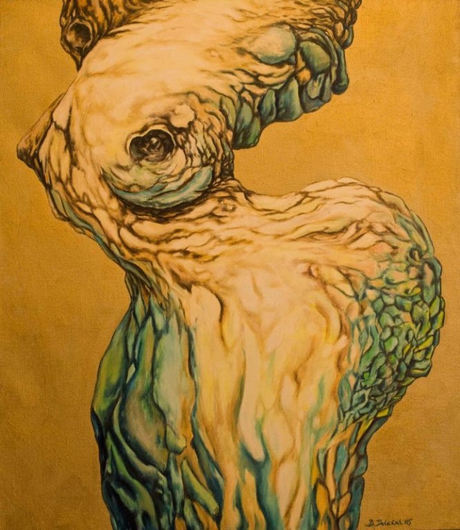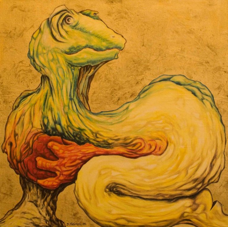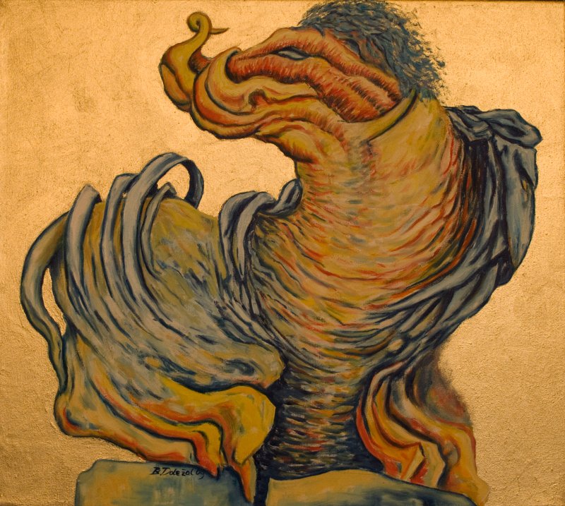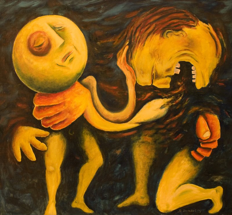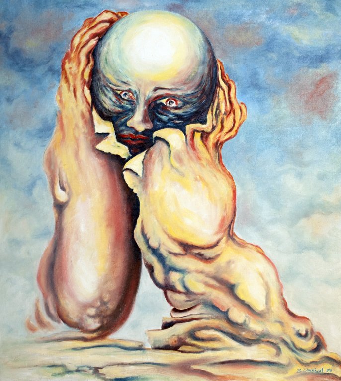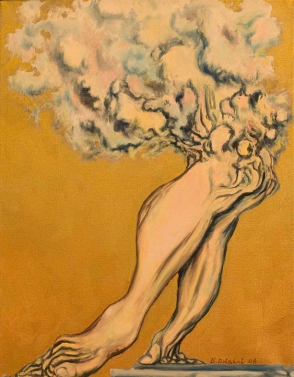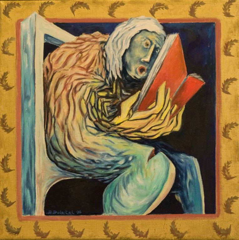 To, co nyní čtete, nejsou oslavné tanečky kolem pochybných drahokamů ve stylu kladení myrtových věnců na temna ujetě astrálních, mírně apokalyptických, satyrských, omamně levandulových, neutuchající invencí jiskřících či jinak ozvláštněných hlav. Není to ponížené poklonkování dílu, z něhož na vnímatele čiší krása i ošklivost života, nebojácnost i strach, vánek s odérem brčálově vůně i vichr se zahnutými háky děsu. Je to osobní význání, je to intimní vhled do výtvarného světa pražského výtvarníka Bohuslava Doležala. Malíři, jenž mne poctil tím, že mě vzal s sebou na výpravu do odvrácených krajin cítění, tajů lidských explozí, hlubin mysli (kam se sestupuje pouze na vlasní nebezpečí, jelikož na dně číhá smrt), labyrintů vášní a kolosea pro ty nejodvážnější řeky, hrdiny, kteří bojují různými zbraněmi. Třeba paletou, štětcem, lisem, barvami - prostě sdělením, že tady v Česku žije - je člověk, jenž prostřednictvím výtvarných počinů - expanzí snímá "vesmírnému obru" břemena, mnohé hříchy světa. Bohuslav přišel na tuto zemi, aby vítězil. Hodně lidí to ještě nevědí. Ale zrovna tak hodně už ano. Sám sebe řadím mezi ty druhé.