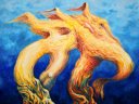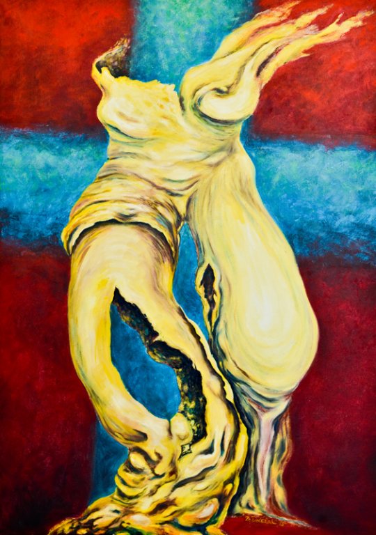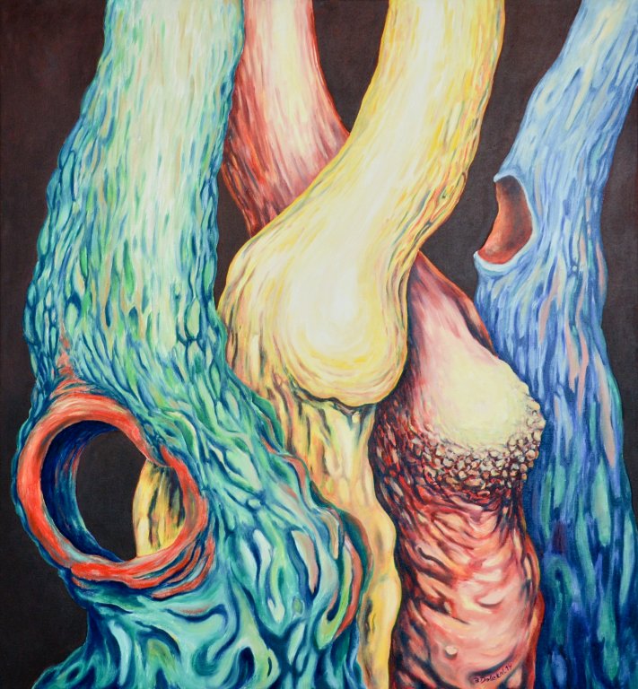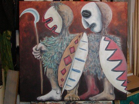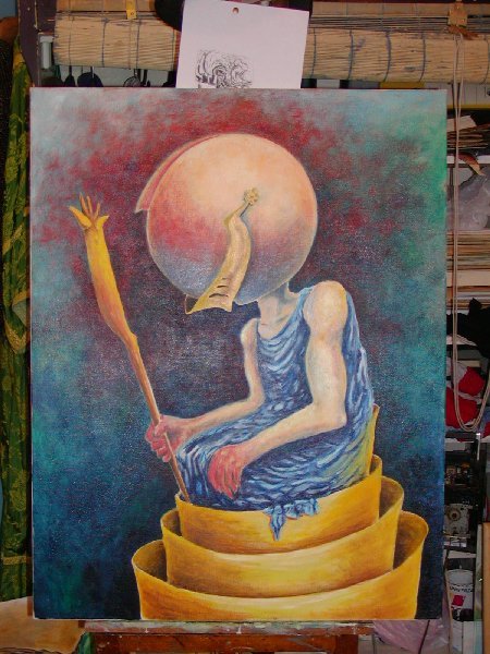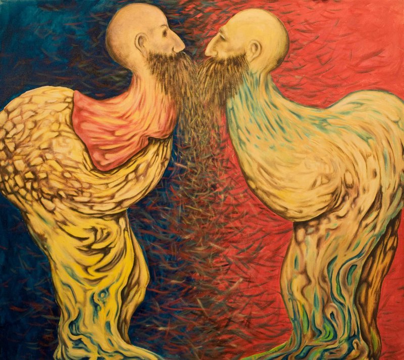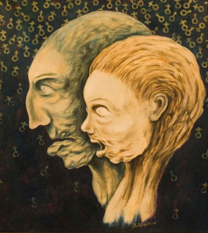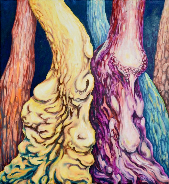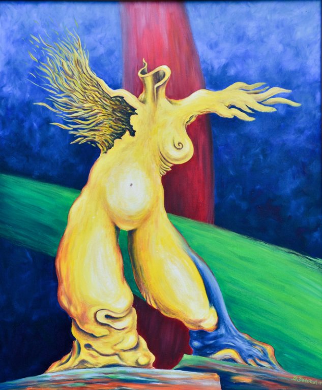 To, co nyní čtete, nejsou oslavné tanečky kolem pochybných drahokamů ve stylu kladení myrtových věnců na temna ujetě astrálních, mírně apokalyptických, satyrských, omamně levandulových, neutuchající invencí jiskřících či jinak ozvláštněných hlav. Není to ponížené poklonkování dílu, z něhož na vnímatele čiší krása i ošklivost života, nebojácnost i strach, vánek s odérem brčálově vůně i vichr se zahnutými háky děsu. Je to osobní význání, je to intimní vhled do výtvarného světa pražského výtvarníka Bohuslava Doležala. Malíři, jenž mne poctil tím, že mě vzal s sebou na výpravu do odvrácených krajin cítění, tajů lidských explozí, hlubin mysli (kam se sestupuje pouze na vlasní nebezpečí, jelikož na dně číhá smrt), labyrintů vášní a kolosea pro ty nejodvážnější řeky, hrdiny, kteří bojují různými zbraněmi. Třeba paletou, štětcem, lisem, barvami - prostě sdělením, že tady v Česku žije - je člověk, jenž prostřednictvím výtvarných počinů - expanzí snímá "vesmírnému obru" břemena, mnohé hříchy světa. Bohuslav přišel na tuto zemi, aby vítězil. Hodně lidí to ještě nevědí. Ale zrovna tak hodně už ano. Sám sebe řadím mezi ty druhé.