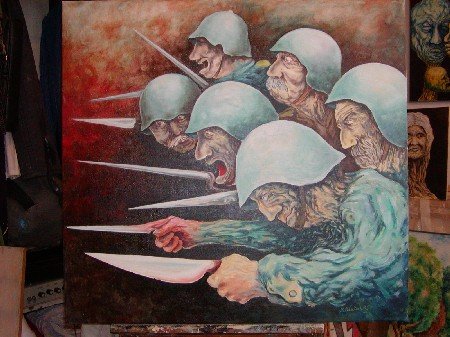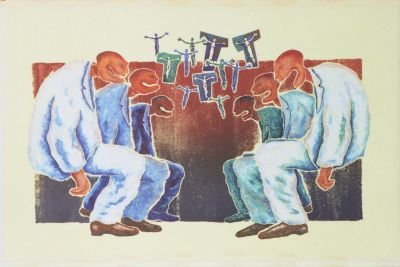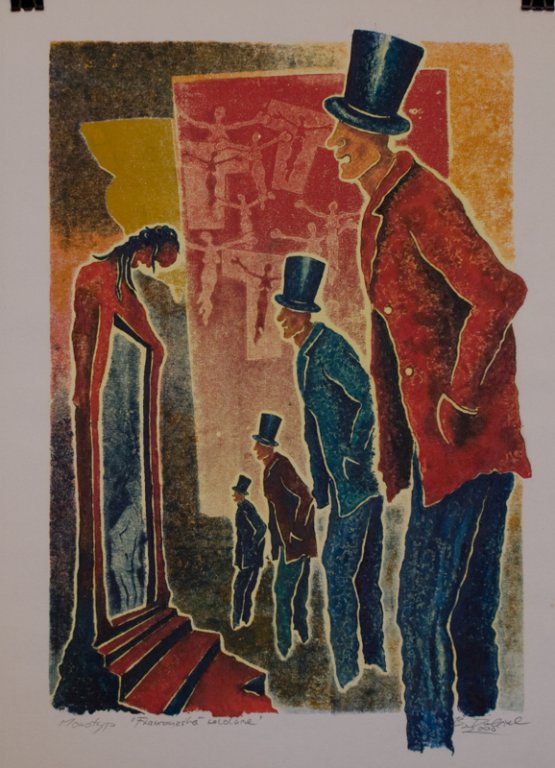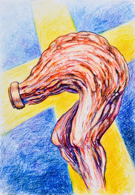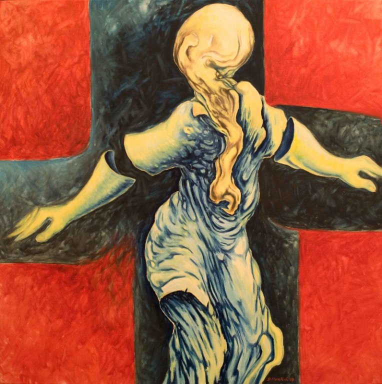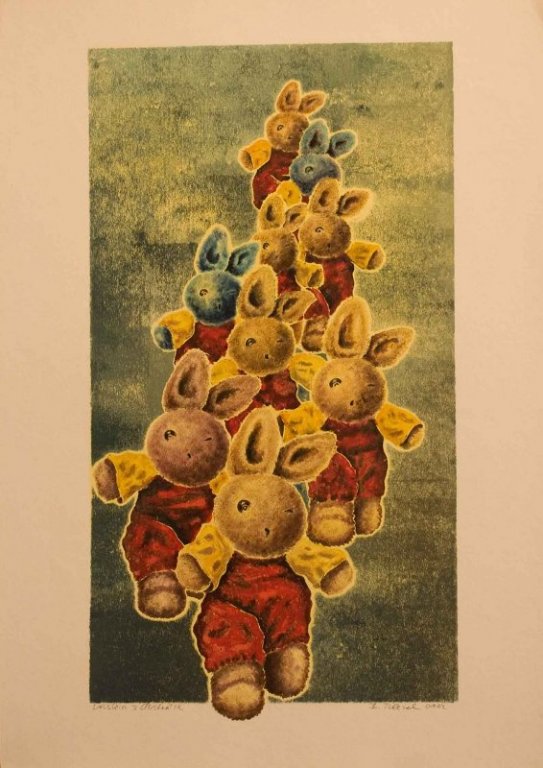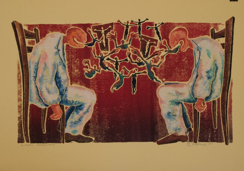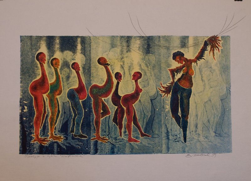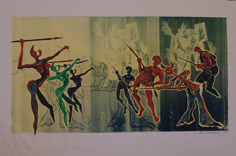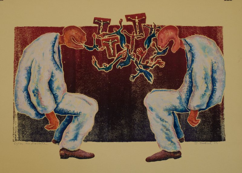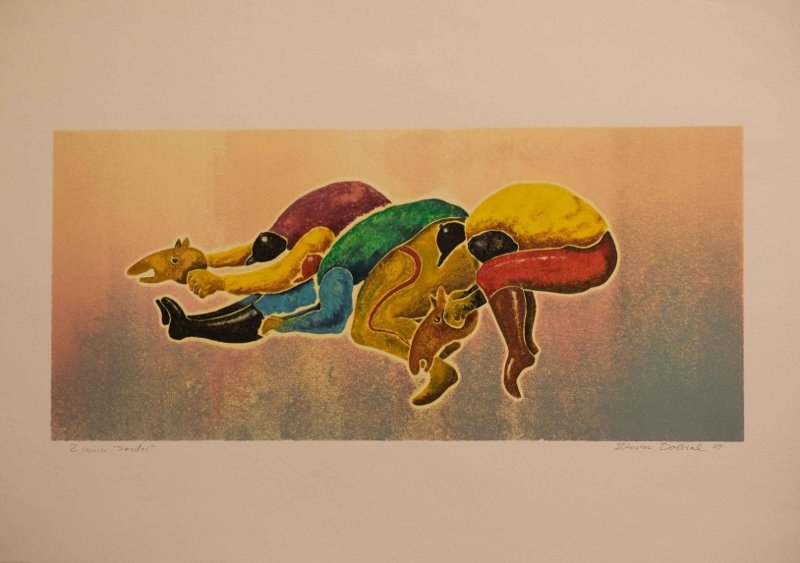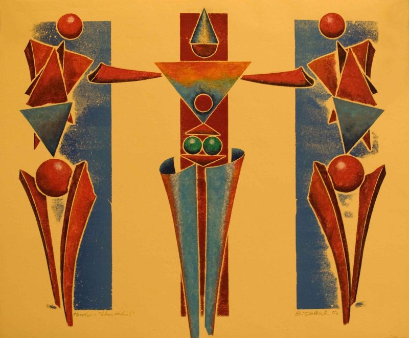 Pro akademicky vzdělané neuchvatitele a pro ty, kteří zatím nebyli postiženi kolikou slávychtivostí, je "Konfrontace" prostorem, kde se nekastruje cit a neznásilňují můzy, prostorem, kde se o vážných věcech komunikuje beze slov. Pro mne a Ivana Kříže a Radka Sedláčka, tedy pro nás, kteří jsme byli na pondělní vernisáž, a kteří Bohouška Doležala známe delší čas, je do jisté míry zjevením jeho na kříži přítomnosti přibité grafické pábení. Zjevením proto, že si ho pamatujeme jako člověka, který před mnoha roky odcházel z Vysokého Mýta bez výraznější ambice Uvidět, a který se skrze nenásilnou konfrontaci k nám vrátil coby svébytný Tvůrce, jenž o tom, co uzřel, dokázal podat nepřehlédnutelnou zprávu.