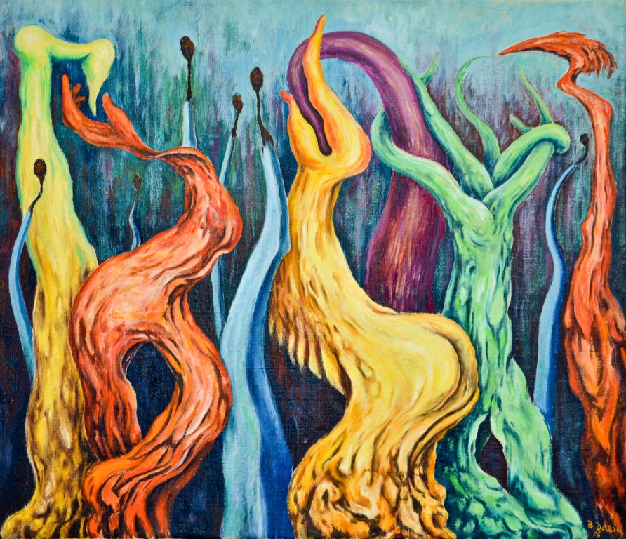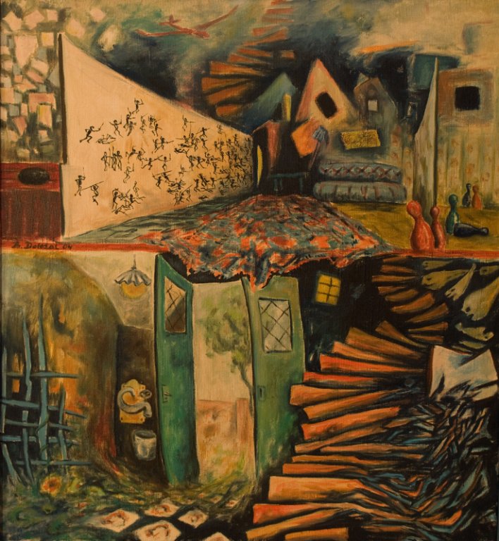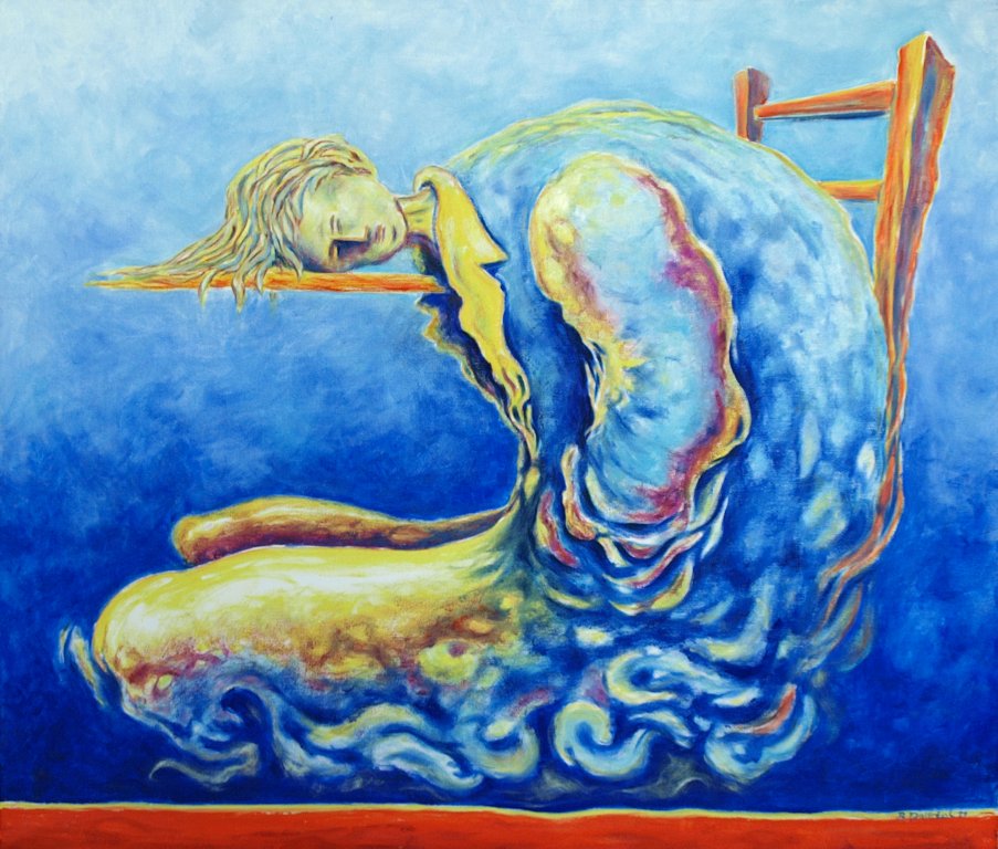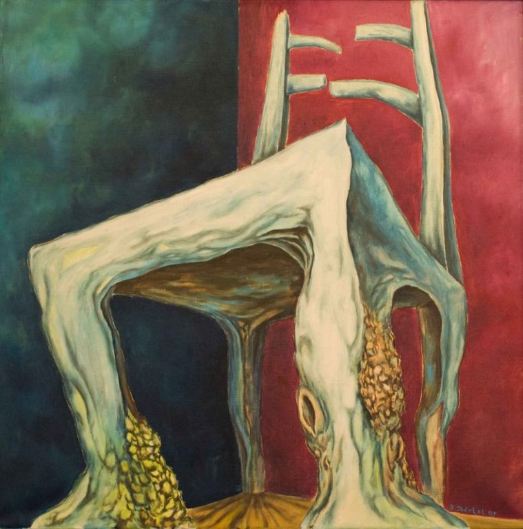 Tak to má být. Tak je to správné. Jenom při neobvyklých výkyvech na duševním nebi je totiž možné uchopit nápad a proměnit ho v Dílo. A to Bohoušek ovládá mistrně. Doležala můžete slavnostně vyzvedávat na piedestal, můžete ho proklínat hrubými slovy, chladnými vás však určitě nenechá. Vždy vás nějak poznamená. Můžete vstopit do jeho pomyslné stavby a tam si prohlížet obrazy se zankou - Made in Bohuslav Doležal. Můžete zatleskat, můžete udiveně mlčet. Můžete se opřít o jeho originální abstraktní opěradla. Bude vám jako při návštěvě výstavby obrazů muže, jenž si za své krédo vybral přímost. Jinak řečeno - neuhýbat a jít rovně k tomu, co chce věrně zachytit na plátno nebo jiný materiál. Tak tedy:"Opřete se". Bohuslav Doležal vás neodmítne. Nezklame.