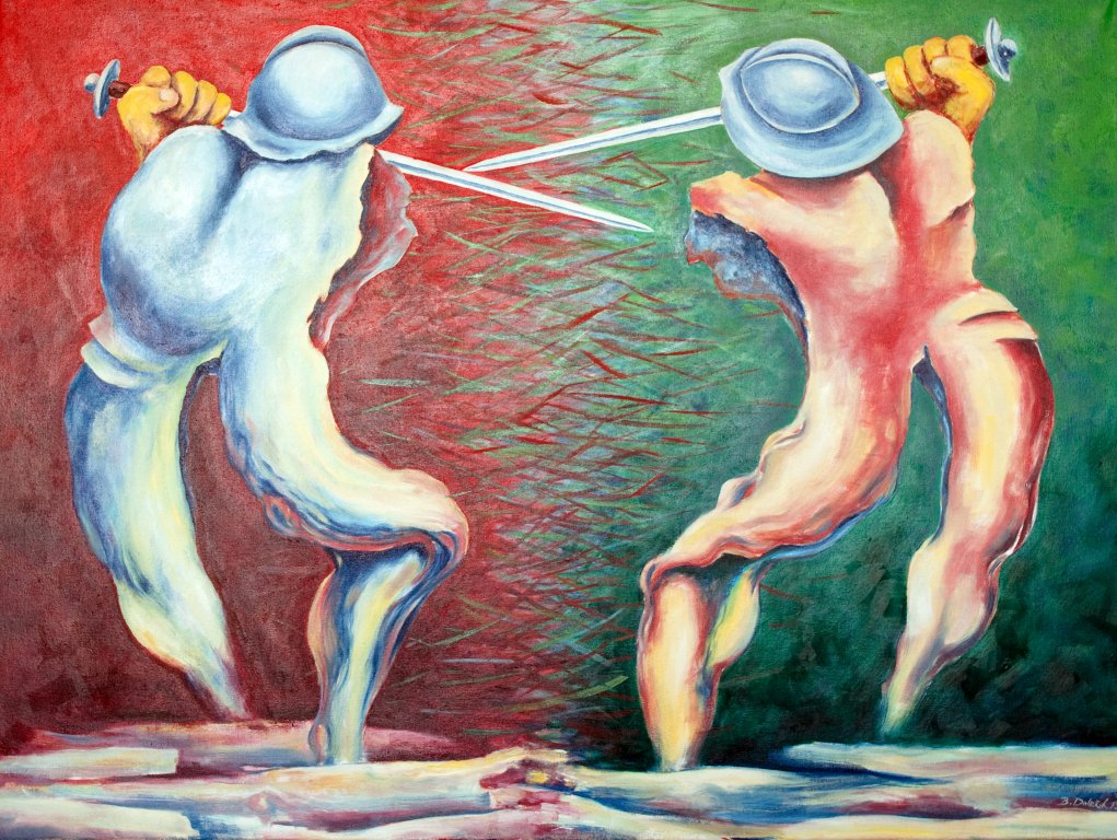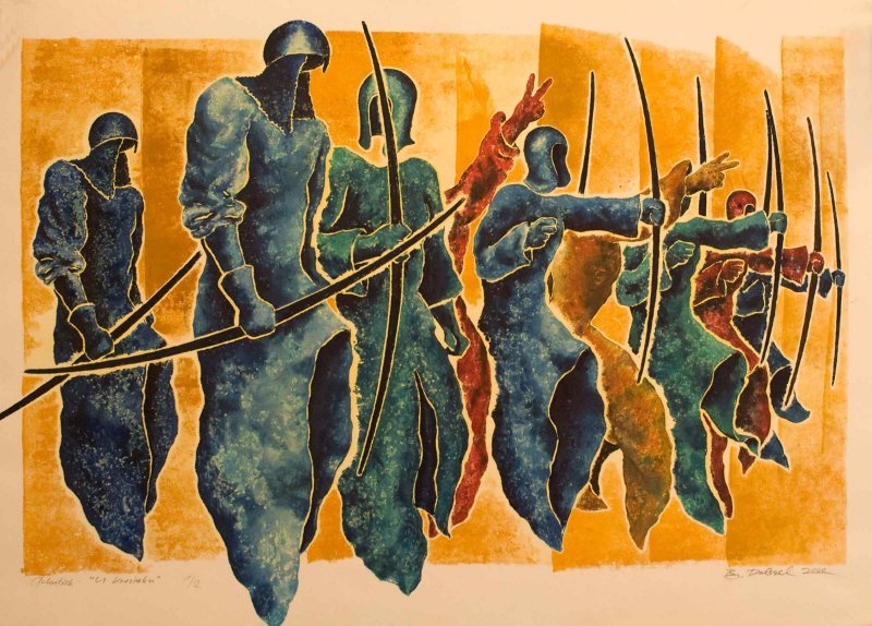 Co říct o Bohuslavu Doležalovi, dívám-li se na jeho obrazy a grafiky? Napadají mne především slova fascinace a znepokojení. Doležal je fascinován historií.