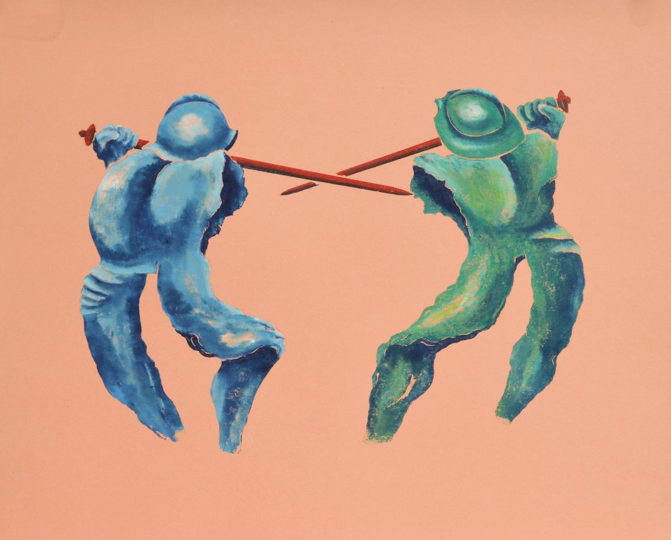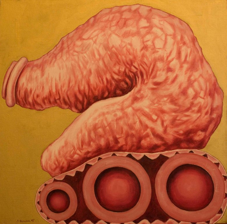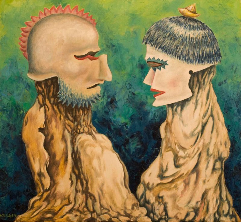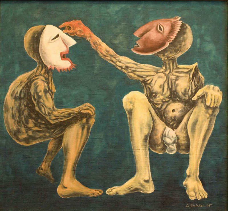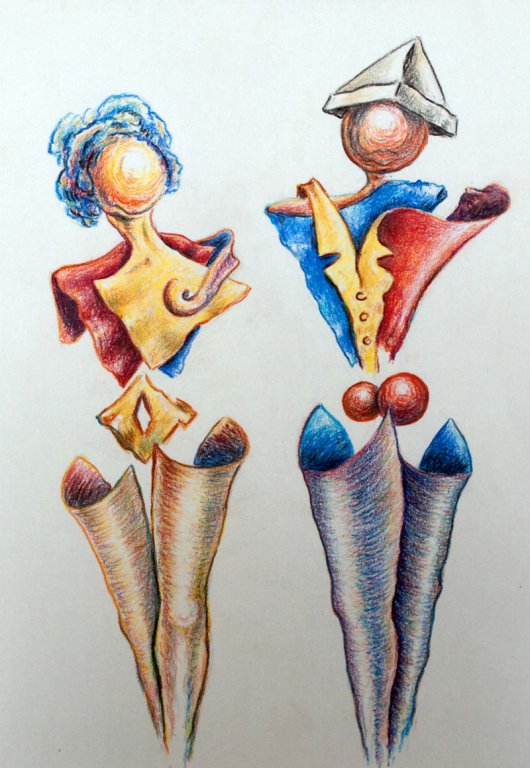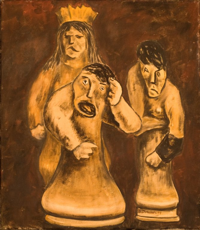 Doležal je znepokojen tímto návratem téhož. Používá symbolů známých, takřka banálních. Razítka, klotové rukávy, šachové figurky, cylindr. Vidí je potisící a najednou jakoby poprvé. Šachové figurky v Doležalově podání jsou jedinečné osobnosti, dojímavé ve své typické formě, osamělé ve svém osudu. To nejsou dvě šachové figurky, to je jedinečné rama krále a královny a my jsme náhle se znepokojením na rozpacích, jestli na výsledku kurtoazního dramatu, které se před námi odehrává, nezávisí i násš vlastní osud.