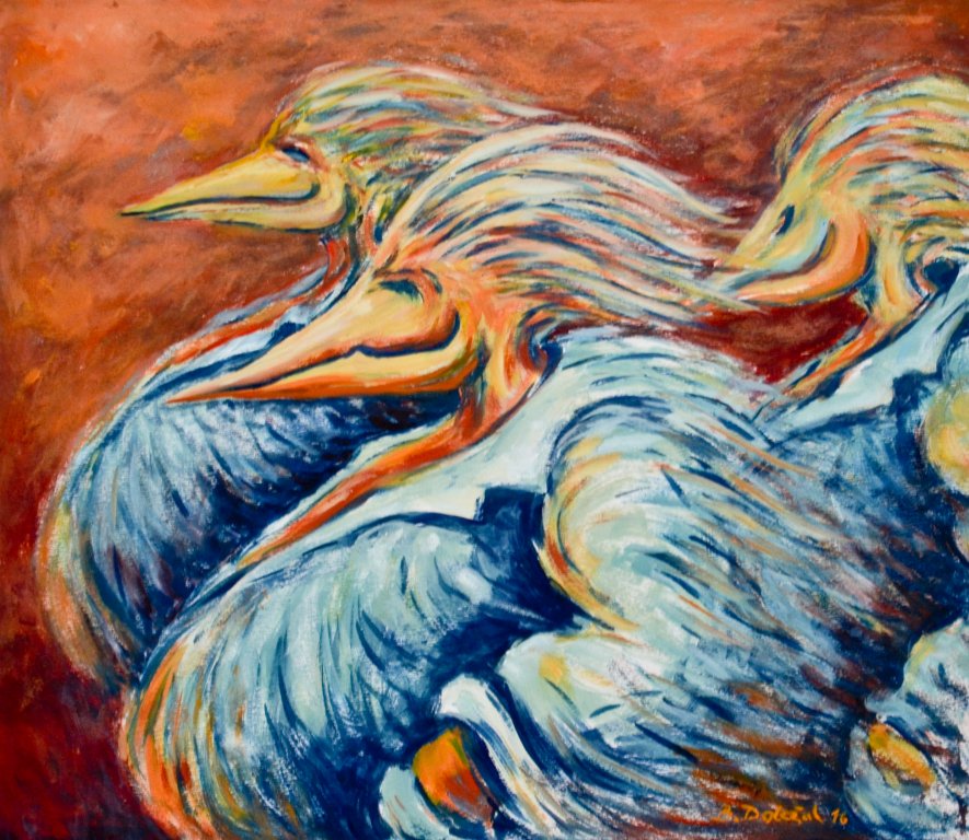 Význam se, i když se to zdánlivě v této době nenosí. Jsme zasažen Doležalovými grafikami i obrazy. Pomáhají mi smířit se s mou vlastní dějinností.